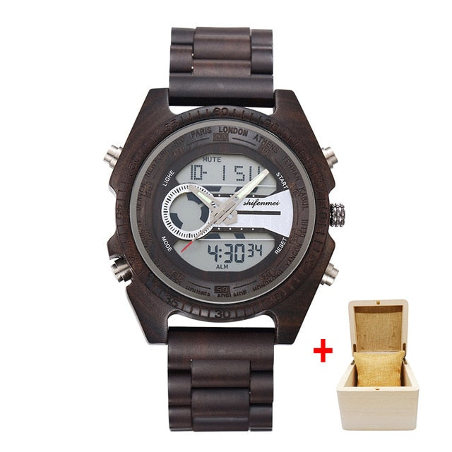 Watch Men 2019 Wood Watch Sport Quartz Mens Watches Top Brand Luxury LED Digital Clock Wooden Wristwatch Male Relogio Masculino
